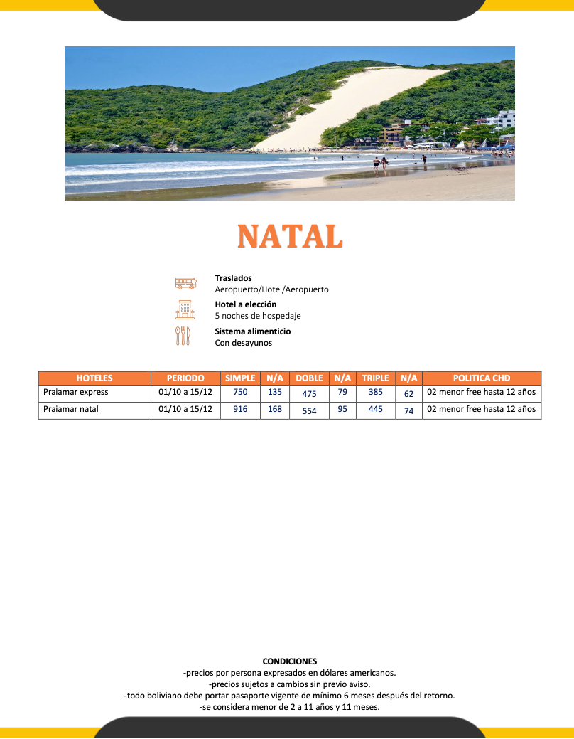 | Praiamar natal | 01/10 a 15/12 | 916 | 168 | 554 | 95 | 445 | 74 | 02 menor free hasta 12 años |