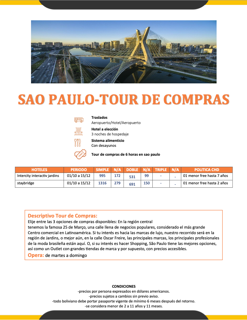 Elije entre las 3 opciones de compras disponibles: En la región central tenemos la famosa 25 de Março, una calle llena de negocios populares, considerado el más grande Centro comercial en Latinoamérica.
